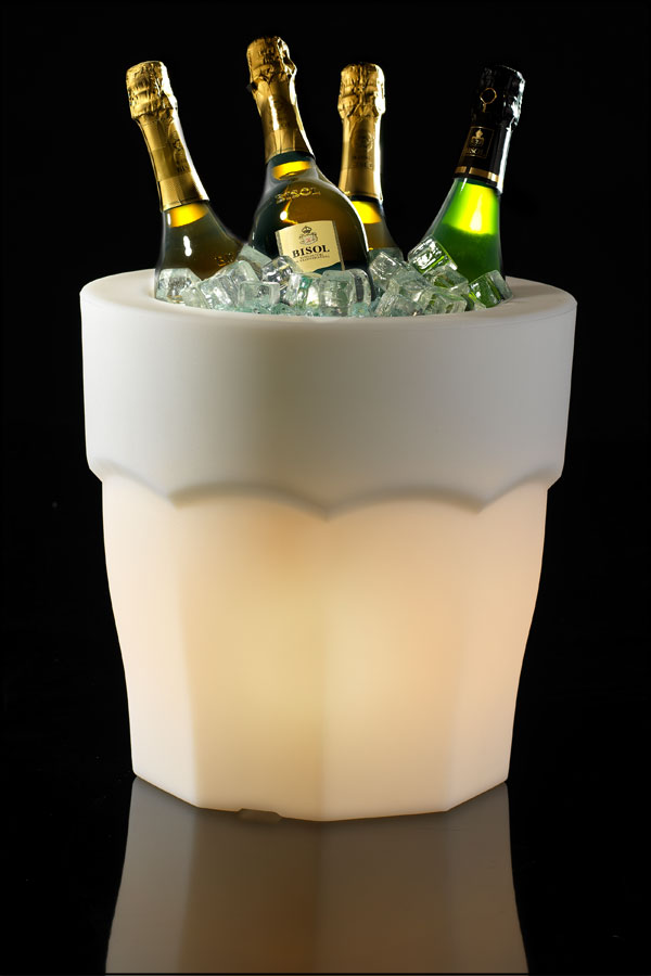 Als beleuchtetes Pflanzgefäß oder auch als Sektkühler verwendbar.