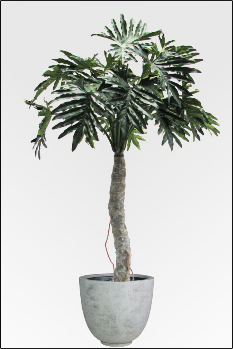 Der besonders schöne, palmenartige Stamm mit Luftwurzeln macht den Philodendron Selloum einzigartig. Besonders kräftig wirken die flexiblen Stiele mit den großen, sattgrünen, fingerartigen Blättern.